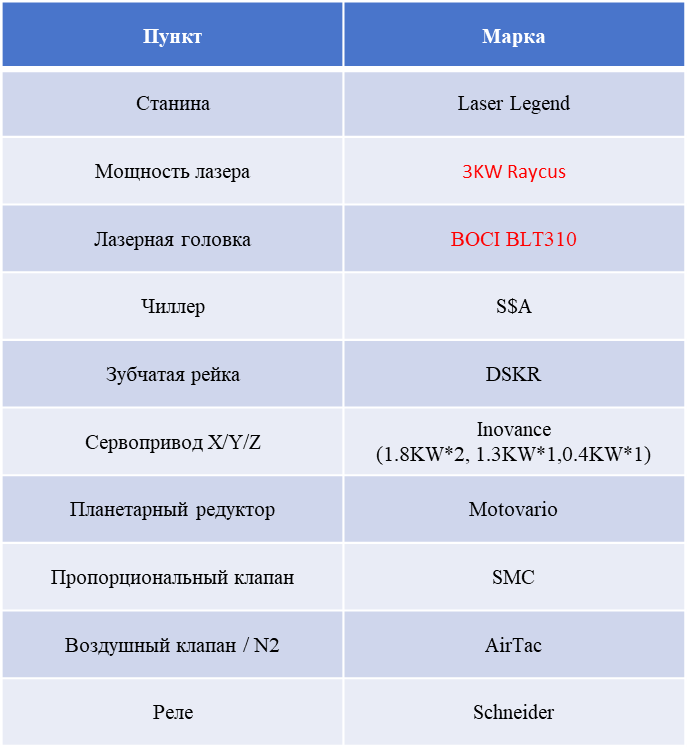 В качестве режущего инструмента в станке используется лазерное излучение генерируемое источником Raycus или IPG со сроком службы до 100 000 часов. Передача потока от источника лазерного излучения в зону резки осуществляется по оптоволоконному кабелю.